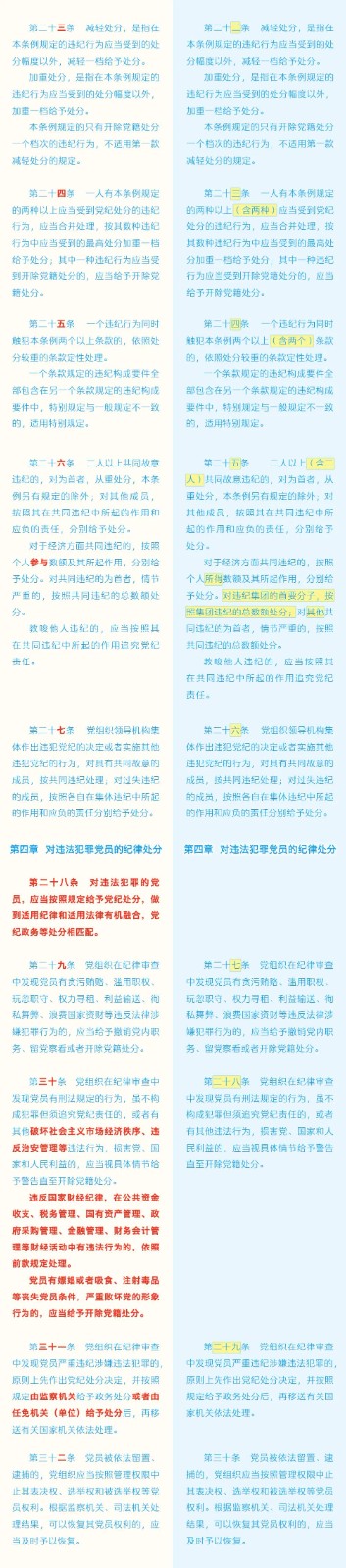《中國(guó)共產(chǎn)黨紀(jì)律處分條例》修訂條文對(duì)照表 發(fā)表時(shí)間:2024-01-04